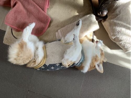 昨日、病院ってだけでも、 犬の血圧に影響が出るお話を書きましたが… 今度は体勢のお話(笑) しおりって… 「重石(おもし)」の異名を持つほど、 基本…動かない女な訳ですが、 暇になると…すぐ寝ちゃうんですよ~。 しおり「ぐーぐー…」 んで、コーギーの身体…