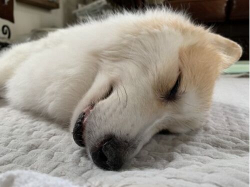 本日も せがちゃん自宅皮下補液の日でした^^ 毎度…寝入った時を狙うので、 今回も本犬知らずに終わってます(*'ω'*) 大分、鎮静剤の使い方が分かってきました。 脳に強い興奮が在った後は数日強めに使い(コントミン1錠) 平穏な日々で安定している時は弱く(…